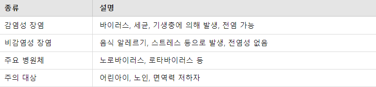 장염 원인 및 전염 경로 요약