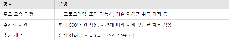 특정 자격 조건에 해당하는 경우, 더 많은 혜택을 받을 수 있습니다. 예를 들어, 저소득층, 장애인, 취업 취약 계층은 추가 지원을 받을 수 있으며, 자격 요건에 따라 교육비 지원 한도나 자비 부담률이 낮아질 수 있습니다.
