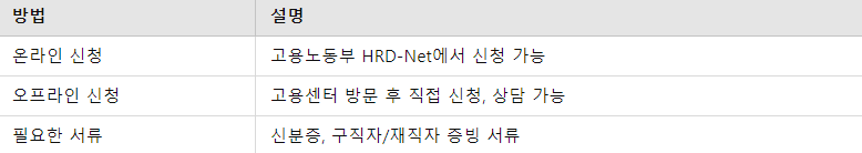 오프라인 신청을 원하는 경우 가까운 고용센터에 직접 방문해 신청할 수 있습니다. 고용센터에서 필요한 서류를 작성하고 제출하면, 심사를 거쳐 카드 발급 절차가 진행됩니다. 오프라인 신청은 신청 과정에서 상담받을 수 있어 직업 상담이 필요한 경우 유용합니다.