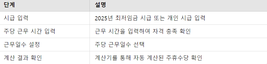 주휴수당 계산기 사용 요약