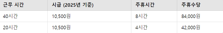 주 20시간 근무, 시급 10,500원