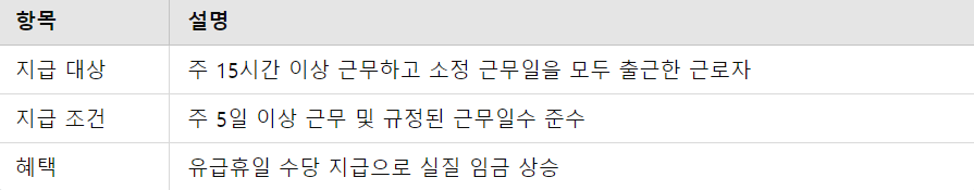 근로자는 주 5일 이상 근무 시 주 1일의 유급휴일을 보장받게 되며, 주휴수당을 통해 그날의 임금을 추가로 받게 됩니다.