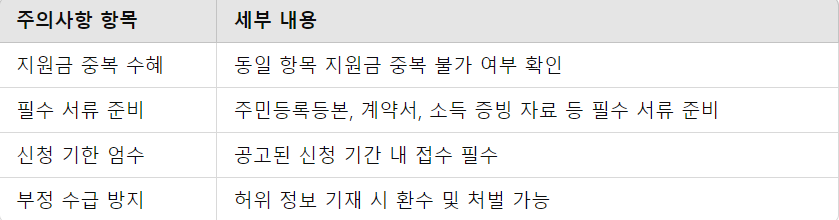 다른 주거 지원 혜택(예: 공공임대주택)과 중복 지원 불가.