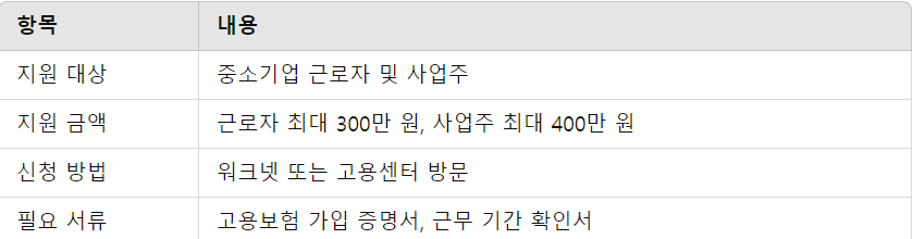 ● 지원 금액: 근로자: 최대 300만 원 (1인 기준).
