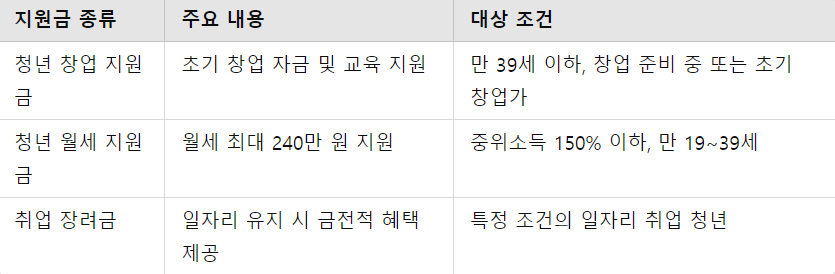 대체로 중위소득 150% 이하인 청년을 대상으로 하나, 일부 지원금은 소득 기준이 없거나 완화된 경우도 있습니다.