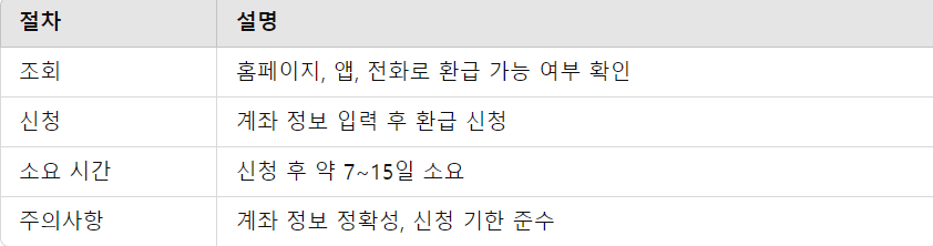 환급금 신청은 3년 이내에 해야 하며, 기한이 지나면 소멸합니다.
