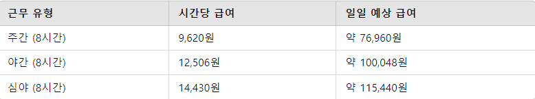 심야, 야간, 공휴일 근무 시 추가 수당 포함됩니다.