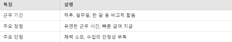 ● 학업과 병행하며 시간제 근무를 원하는 사람에게 적합.