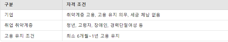 ● 지원 대상은 취약계층을 일정 기간 이상 고용한 기업 및 근로자를 포함합니다.