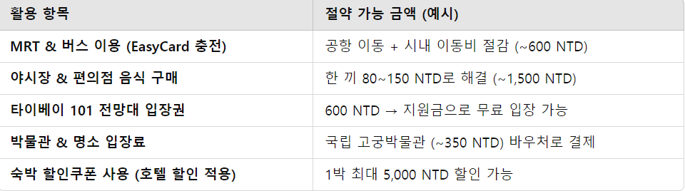 ✔ 타이베이 101 등 주요 관광지 바우처 결제 가능 → 입장료 절약